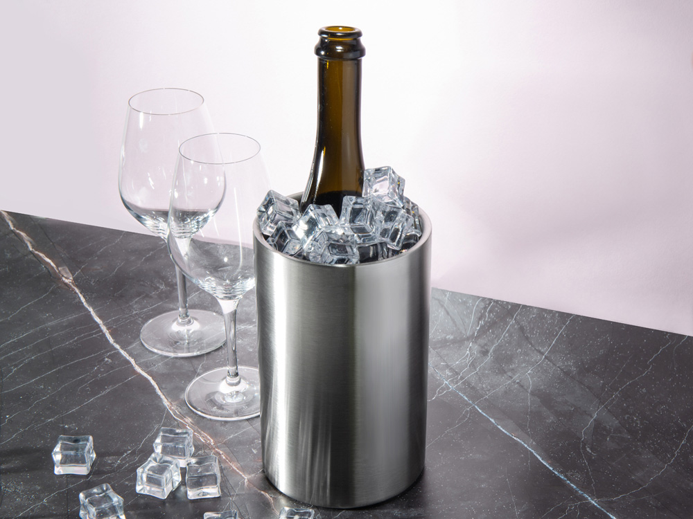 Ведёрко для охлаждения вина Blanc изготовлено из нержавеющей стали. Классический минималистичный дизайн этого ведёрка будет уместен для любого застолья. Ещё один плюс – ведёрко, несмотря на достаточный объем в 1600 мл, не занимает много места на столе. Многие вина, в том числе игристые, и крепкий алкоголь для максимально полного раскрытия вкуса необходимо пить в охлажденном виде. Благодаря двойным стенкам Blanc дольше сохраняет температуру. Использование ведёрка позволит полностью сервировать стол, не бегая за напитками к холодильнику и сохранив при этом их вкусовые качества. Пользоваться ведёрком очень просто и удобно: 1. Поместите ведёрко в холодильник примерно за час до использования. 2. Наполните его льдом так, чтобы дно было закрыто минимум двухсантиметровым слоем. 3. Поместите бутылку в Blanc и подайте на стол.
