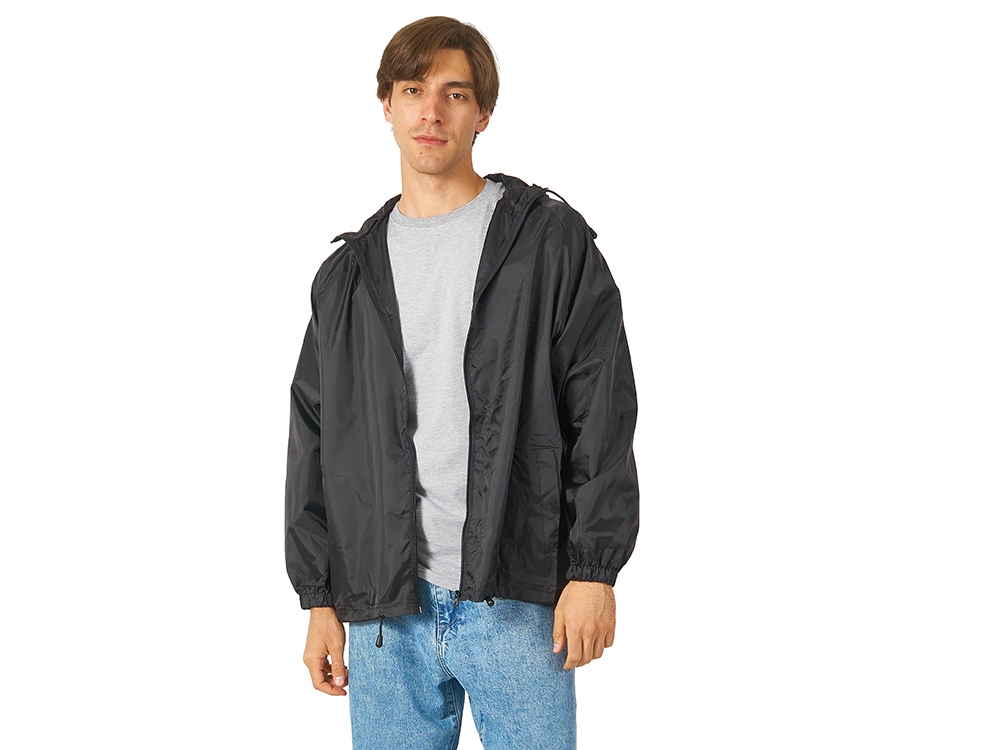 Мужская ветровка с капюшоном без подкладки застегивается на молнию, манжеты на резинке, нижняя часть регулируется с помощью шнурка. Ветровка Promo очень легкая, убирается в удобный чехол и почти не занимает места – она идеальна в качестве сувенира на мероприятиях, проходящих на улице в теплое время года. Доступно четыре расцветки.