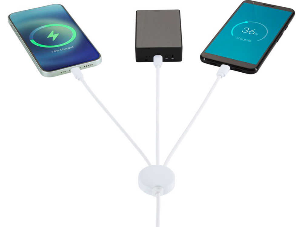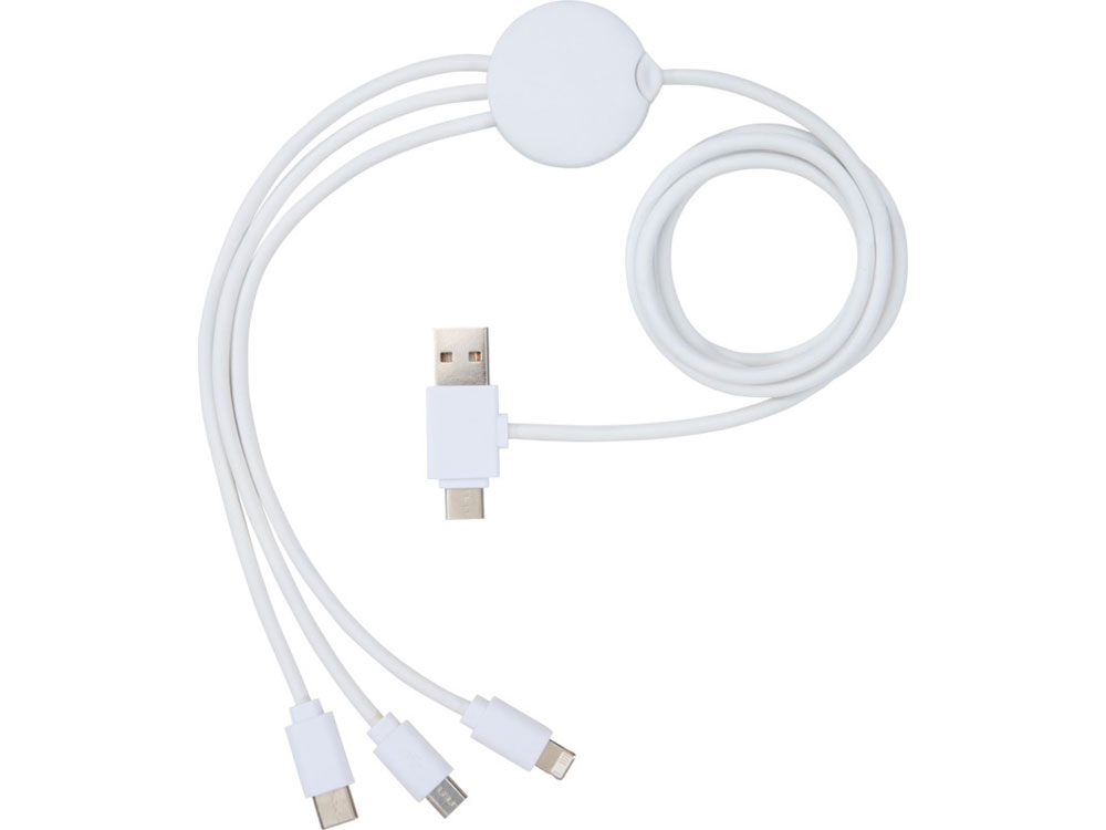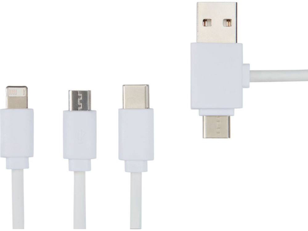 Зарядный кабель с противобактериальной присадкой и 5 разными разъемами: Вход Тип-C, вход USB-A, выход Тип-C, выход iOS и выход micro USB. С возможностью использования кабеля с устройствами с выводом Тип-C, которым оснащены телефоны и компьютеры MacBook нового поколения. Длина кабеля составляет 100 см. Противобактериальная присадка способна эффективно снижать уровень бактерий, присутствующих на поверхности материала, с высокой эффективностью подавляя рост бактерий и грибков, создающих неприятные запахи, приводящих к окрашиванию и деградации текстильных и пластиковых изделий. Протестировано в соответствии с ISO 20743:2013. ПВХ, Пластик ABS.