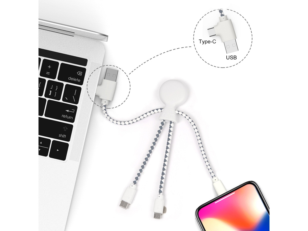 Длина кабеля: Lightning- 11,5 см, USB- 11 см, Type C и Micro- 10