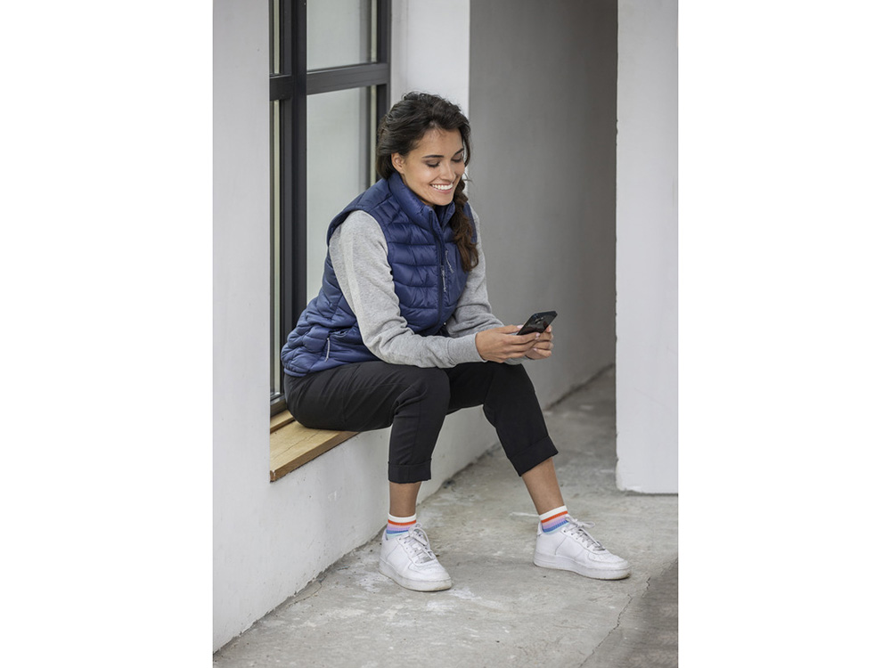 Женский утепленный жилет Pallas – идеальное сочетание стиля и функциональности. Оставайтесь защищенными от холода и ветра благодаря внутреннему штормовому клапану с шингардом. Нагрудный карман на молнии обеспечивает надежное место для самых необходимых вещей. Эластичная вязка придает стильный вид и обеспечивает надежную посадку. Изготовленный из нейлоновой ткани dull cire 380T плотностью 38 г/м², бодивармер имеет гладкую и прочную внешнюю поверхность. Подкладка и наполнитель состоят из искусственного пухового утеплителя из переработанного полиэстера по стандарту GRS, обеспечивая легкое тепло без ущерба для комфорта. Тканый 380Т с пропиткой Cire100% GRS certified recycled nylon, 38 g/m2, 210T100% Полиэстер.