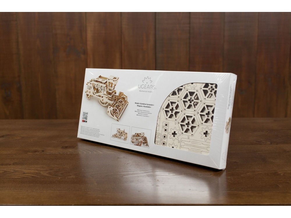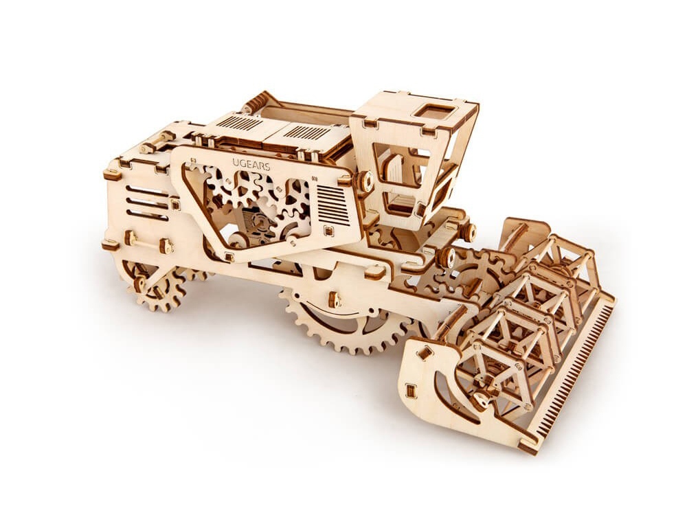 Комбайн – кинетический 3D-пазл от UGEARS, который собирается в зерноуборочный комбайн. Как и в оригинале, молотильный барабан приводится в движение передачей от задних колес. Секретное отделение в кабине можно использовать для передачи записок и мелких вещей. 154 детали.