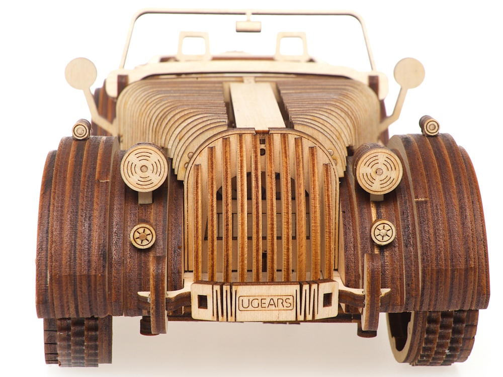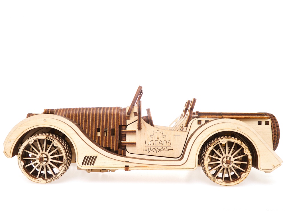 Родстер VM-01 от UGEARS - это сборная модель деревянного автомобиля с уникальной харизмой: утончённо элегантного, изысканно стильного и бескомпромиссно быстрого. Он уже готов занять почётное место в Вашей коллекции! После сборки деревянного конструктора Вы посмотрите на точную копию 8-цилиндрового двигателя за работой: поршни приводятся в действие резиномотором, но двигаются точно так же, как в настоящем движке. Вы можете открыть любую дверь автомобиля, покрутить руль и даже сменить скорость на коробке передач. С родстером VM-01 Вас ждут десятки часов позитива и от сборки модели, и от наблюдения за её работой. Машина будет прекрасно смотреться в любом интерьере и станет оригинальным подарком. 437 деталей.