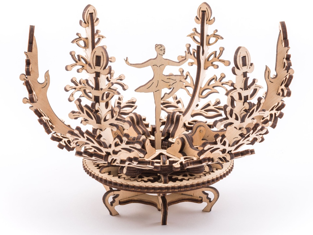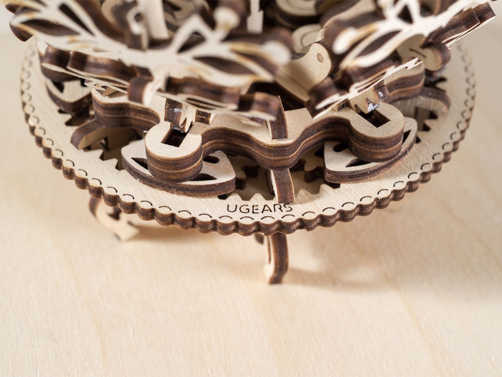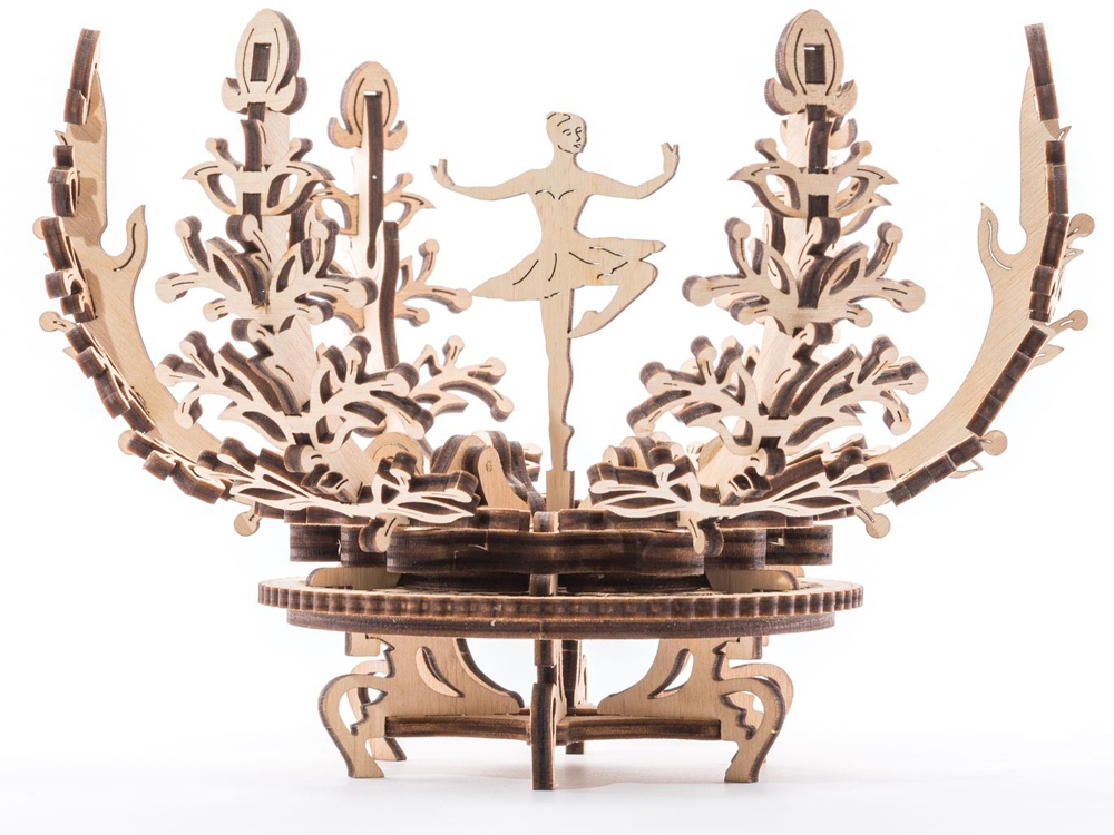 Цветок от бренда UGEARS - это 3D-ПАЗЛ, который после сборки превращается в прекрасную шкатулку-лилию. Механизм закрытия/открытия лепестков скрывает балерину, изящно стоящую на одной ноге. Модель из натурального дерева состоит из 101 детали и предназначена для самостоятельной сборки без клея. 101 деталь.