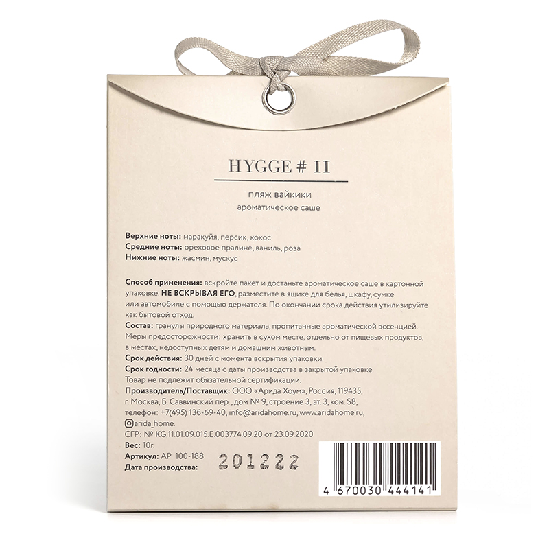 Аромасаше HYGGE #11 Пляж вайкики можно заказать в нашей компании по самой доступной цене от 305.56 рублей.