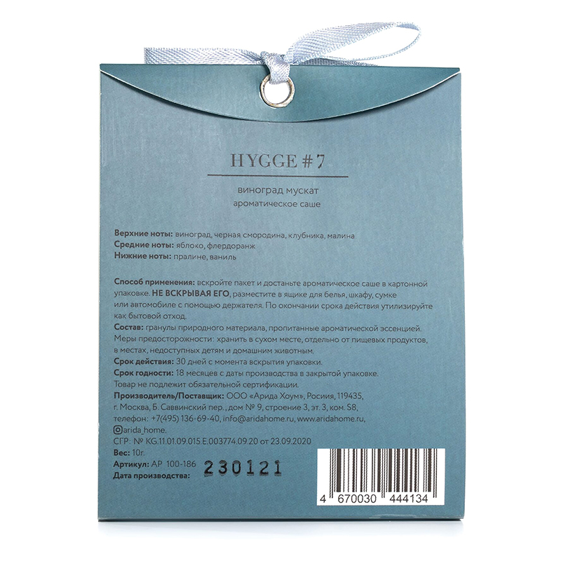 Аромасаше HYGGE #7 Виноград мускат можно заказать в нашей компании по самой доступной цене от 305.56 рублей.