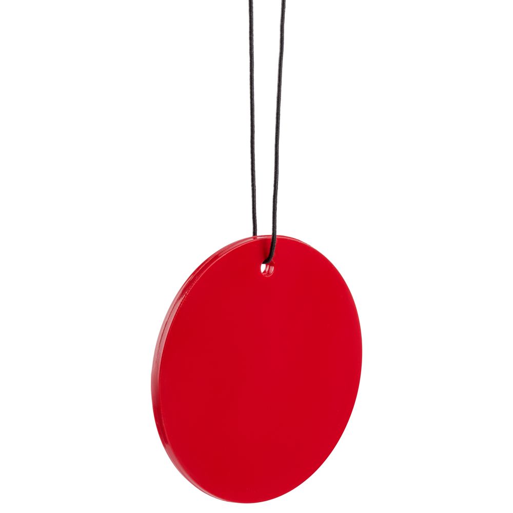 Круглая пластинка из ароматизированного пластика на подвесе-резинке. Срок службы — 30 дней.