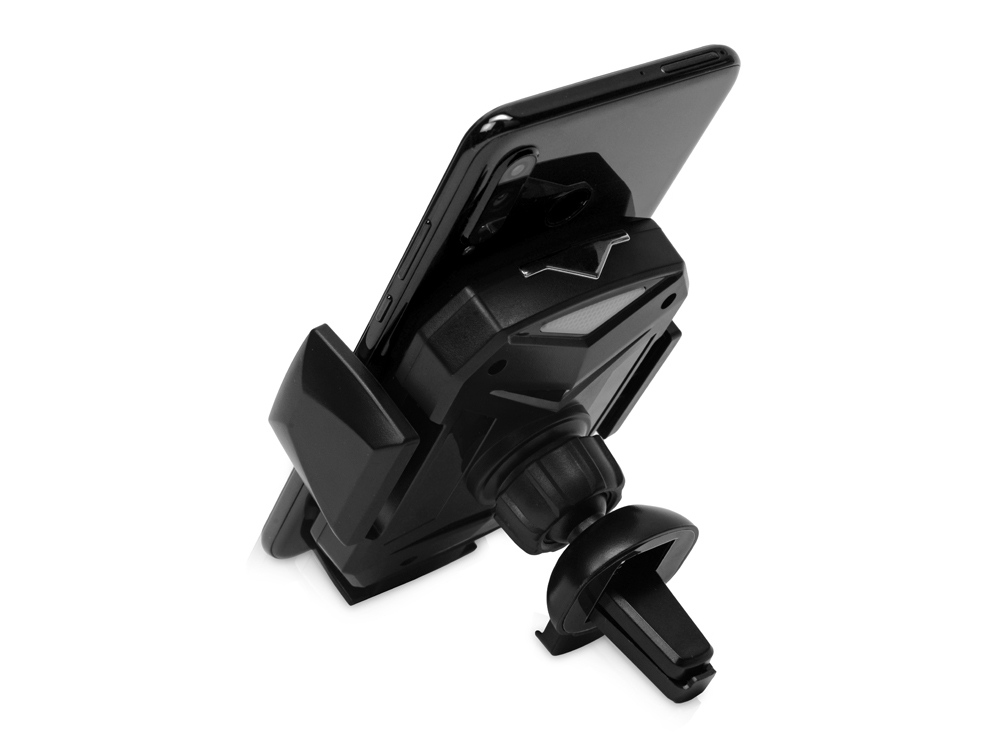 Универсальный автомобильный держатель с функцией беспроводной зарядки. Крепится к дефлектору (воздухозаборнику) или к лобовому стеклу, используя вакуумное крепление из комплекта. Держатель оснащен умным инфракрасным датчиком движения. Просто поднесите смартфон и боковые фиксаторы автоматически раздвинутся, затем установите смартфон, устройство автоматически схватит его. Чтобы достать смартфон, достаточно прикоснуться к сенсорной кнопке на верхней стороне устройства. Держатель можно установить практически в любое положение и придать комфортный угол наклона благодаря 360° шарнирному креплению. Все действия с устройством легко выполняются одной рукой. Центральная область устройства подходит для УФ-печати цветных изображений. Печать производится на пластиковой вставке из комплекта. Если печать не нужна – пользователь может вклеить ее самостоятельно, предварительно удалив стикер с задней части. Автомобильное зарядное устройство OptIQ поддерживает быструю беспроводную зарядку (7,5 Вт и 10 Вт).