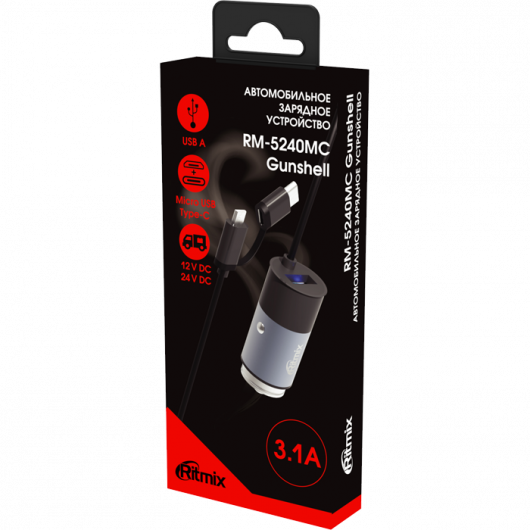 Автомобильное ЗУ RITMIX RM-5240MC можно заказать в нашей компании по самой доступной цене от 543 рублей.