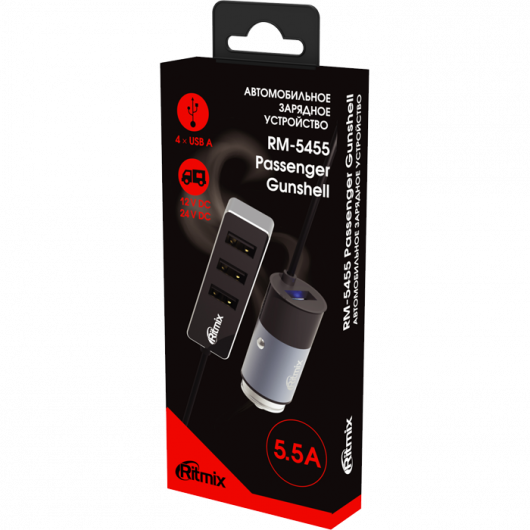 Автомобильное ЗУ RITMIX RM-5455 можно заказать в нашей компании по самой доступной цене от 190 рублей.