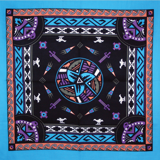 Бандана Калейдоскоп голубой из 100% натурального хлопка большого размера 60х60 см, ткань - высококачественный батист, рисунок на банданах напечатан набивным методом современными активными красителями, при этом принт одинаково хорошо смотрится с обеих сторон. Качественные краски сохраняют цвет даже после интенсивных многочисленных стирок, а также под воздействием солнечного света. Края банданы с подгибом и аккуратной ровной строчкой.