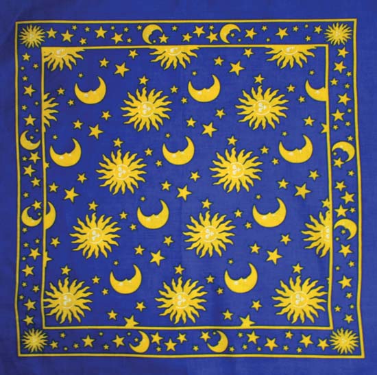 Бандана Ночное небо из 100% натурального хлопка большого размера 60х60 см, ткань - высококачественный батист, рисунок на банданах напечатан набивным методом современными активными красителями, при этом принт одинаково хорошо смотрится с обеих сторон. Качественные краски сохраняют цвет даже после интенсивных многочисленных стирок, а также под воздействием солнечного света. Края банданы с подгибом и аккуратной ровной строчкой.