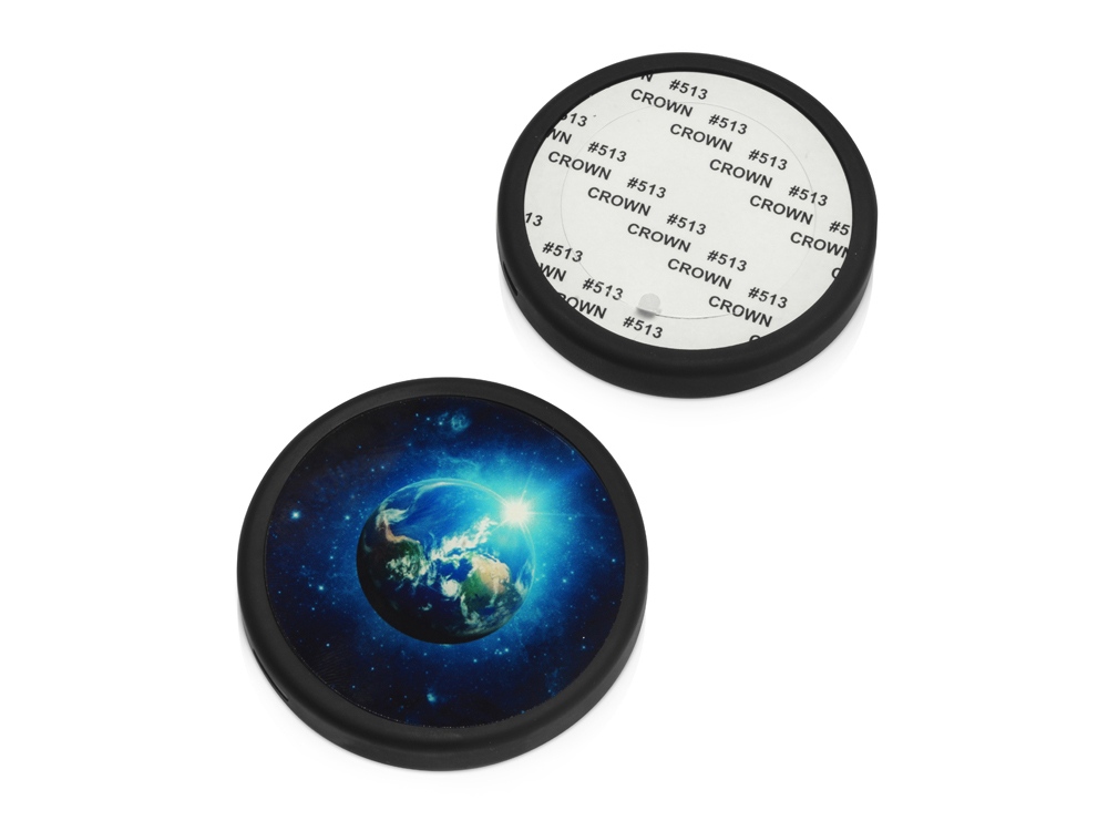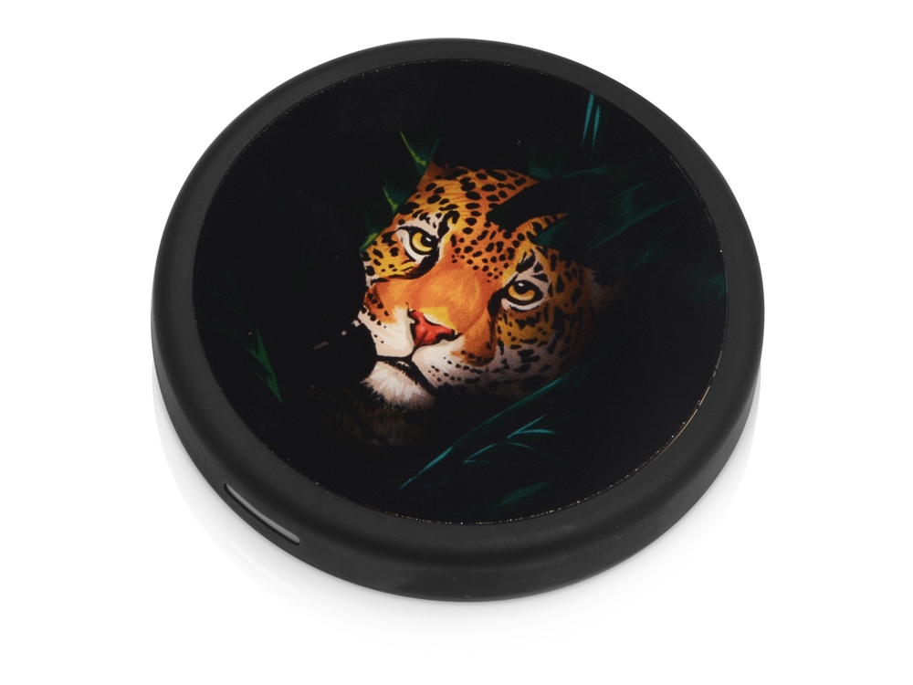 Благодаря миниатюрному размеру устройства и идеальной форме круга, вы не сразу угадаете его назначение. Этот предмет создан для тех, кто предпочитает гармонично встраивать технологии в ежедневную жизнь, деликатно скрывая их под маской обычных вещей. Главная функция устройства — беспроводная зарядка — реализуется качественно и бесперебойно. В комплекте с изделием в разобранном виде поставляется круглое закаленное стекло, на котором можно сделать красочное нанесение любого изображения. После запечатки стекло легко крепится на корпус устройства.