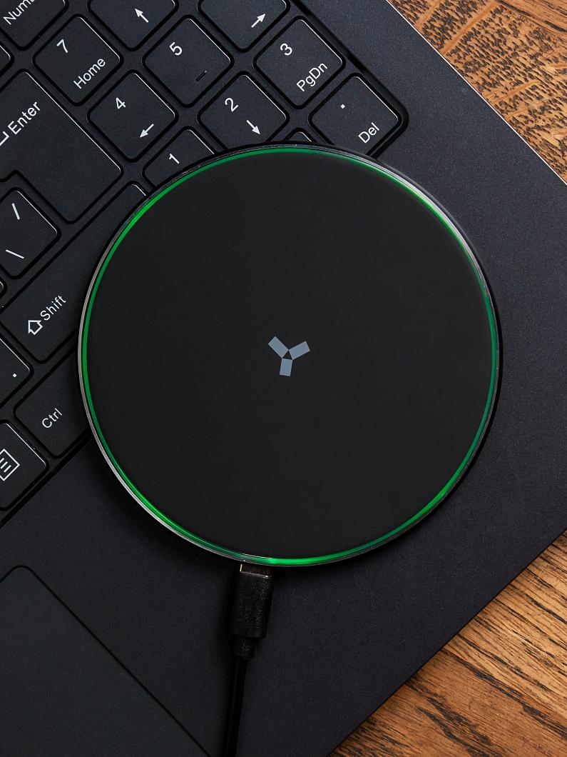 Особенности: недорогая современная беспроводная зарядка с подсветкой; поддерживает стандарт беспроводной зарядки QI; Type-C порт