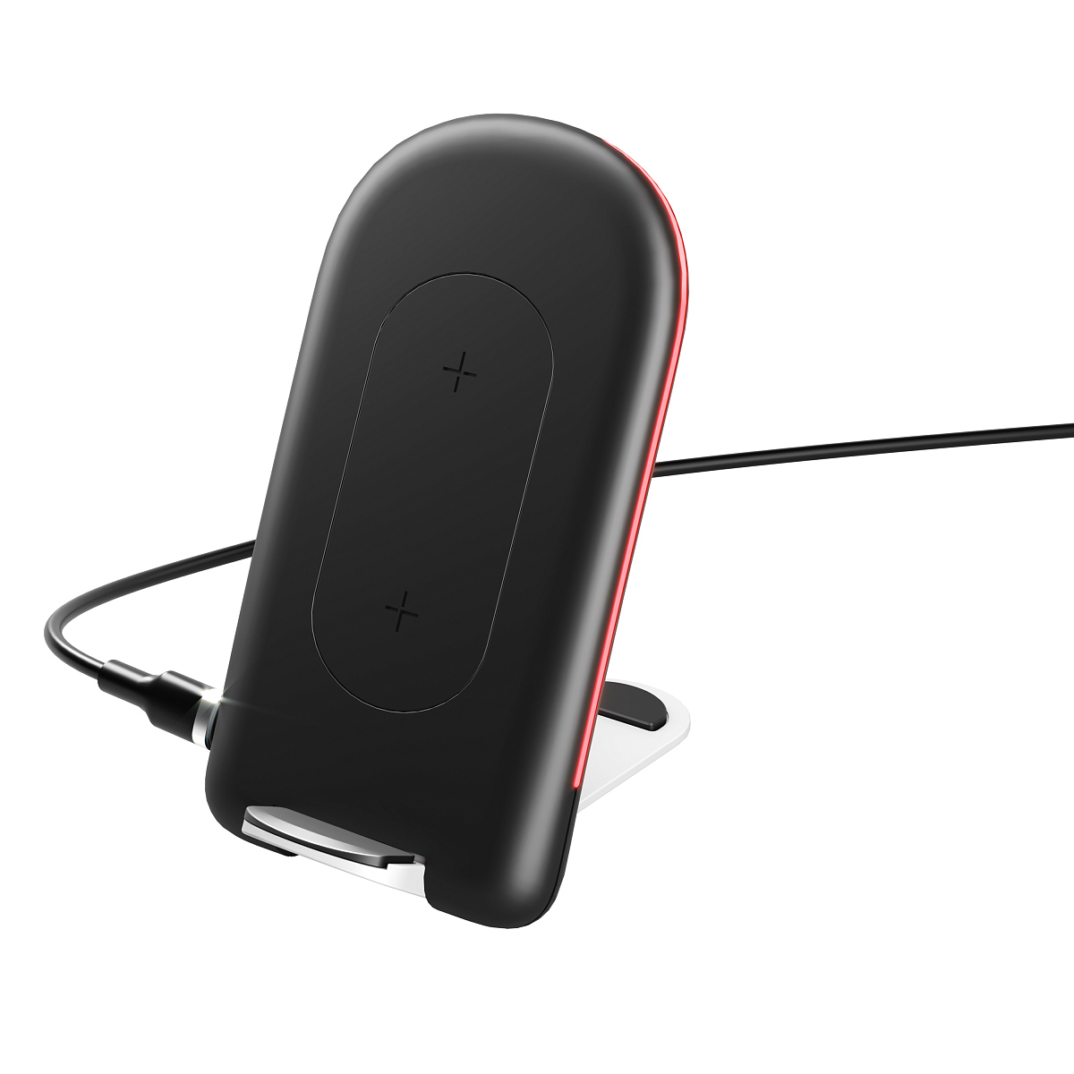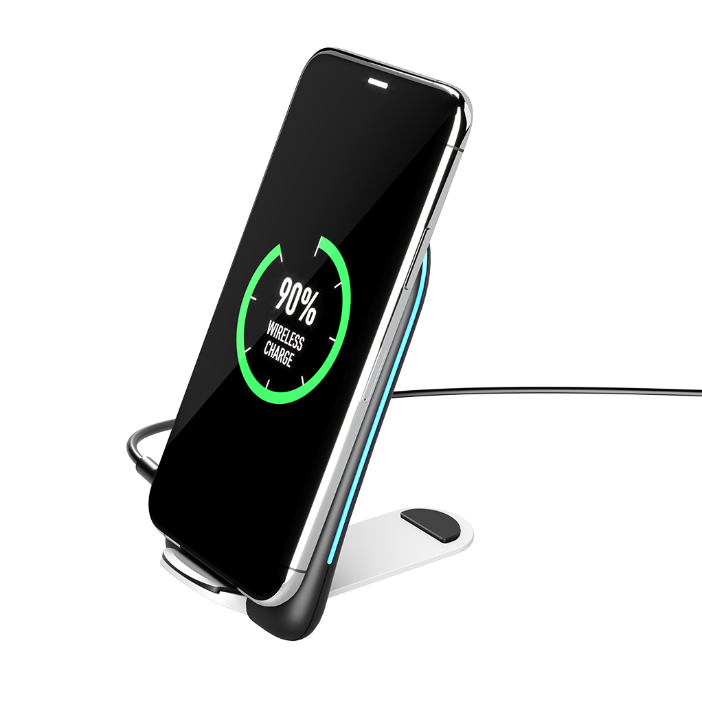 Особенности: 2 катушки для достижения мощности 15W; складная конструкция; возможность заряжать гаджеты как вертикально, так и горизонтально; отключаемая подсветка, двойная катушка