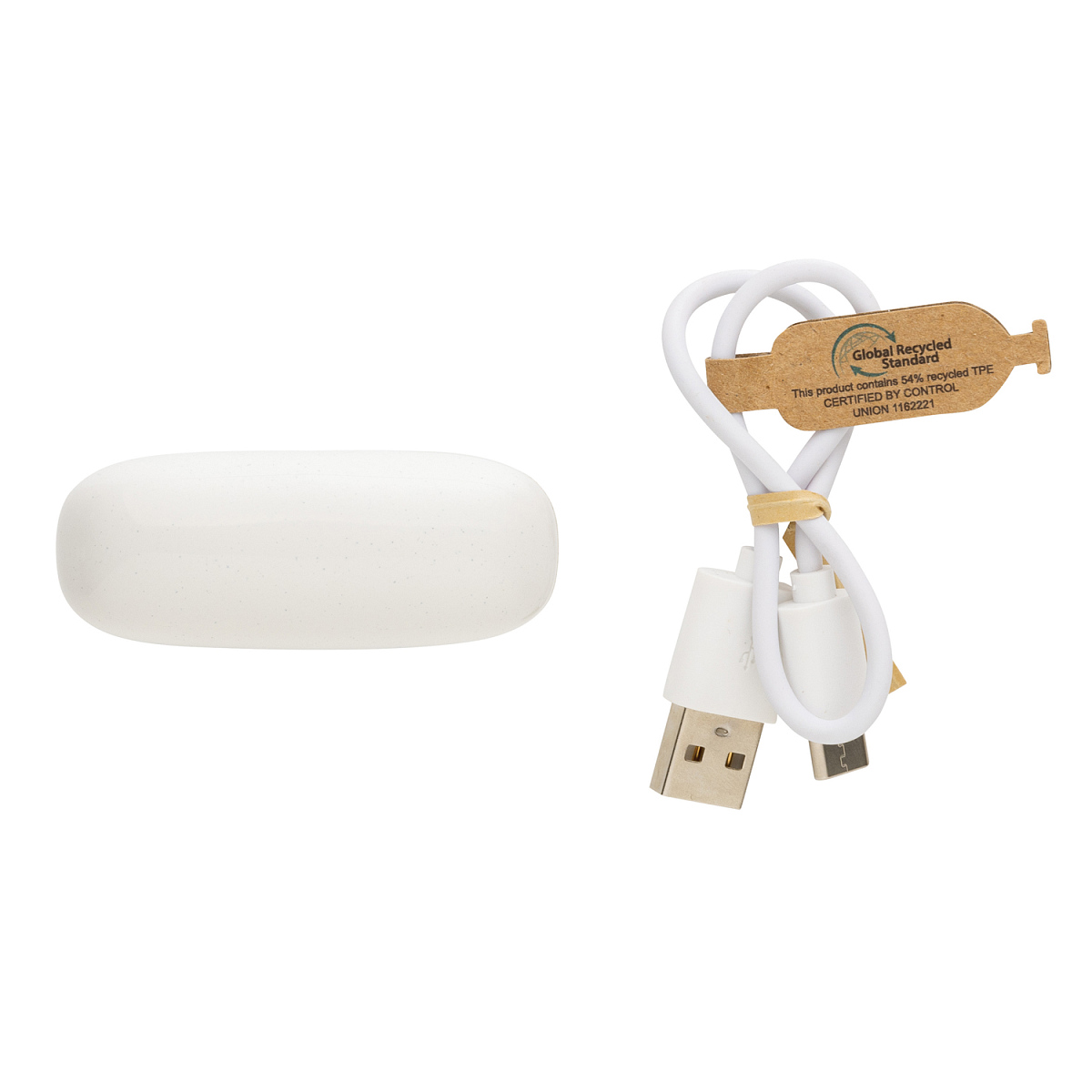 Беспроводные наушники Liberty Pro с кейсом для зарядки изготовлены из переработанного ABS-пластика, сертифицированного RCS (Recycled Claim Standard). Содержание вторсырья: 56% от общего веса изделия. Сертификация RCS обеспечивает полный контроль цепочки поставок переработанных материалов. Наушники оснащены аккумулятором 35 мАч, что позволяет слушать музыку до 3 часов. После чего их легко подзарядить при помощи кейса на 300 мАч всего за 1,5 часа. Благодаря функции автоматического сопряжения наушники легко подключаются к мобильному устройству. BT 5.3 для комфортной и стабильной работы на расстоянии до 10 метров. Есть функция ответа на звонки. Благодаря сенсорному датчику принять звонок или остановить музыку легко, просто коснувшись наушника. В комплекте идут силиконовые вкладыши 3 размеров и кабель для зарядки из переработанного TPE, сертифицированного GRS. Поставляются в упаковке FSC® mix. Длина 6,3 см., ширина 2,5 см., высота 4,8 см., диаметр 0 см.