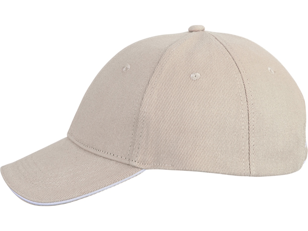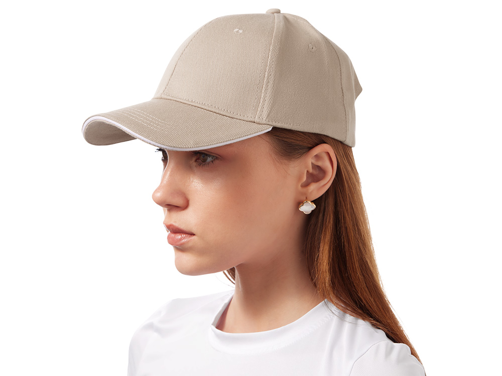 Стильный контрастный кант по козырьку и заднему хлястику добавляет изделию выразительности и делает бейсболку заметным элементом образа.