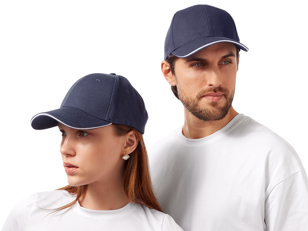 Стильный контрастный кант по козырьку и заднему хлястику добавляет изделию выразительности и делает бейсболку заметным элементом образа.