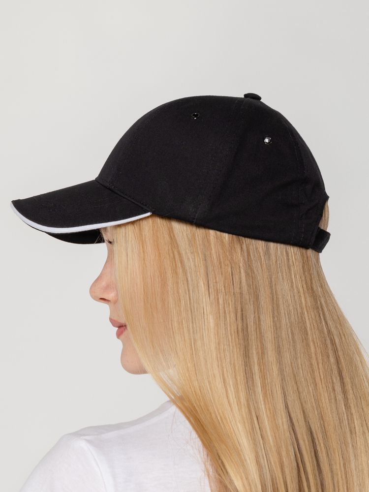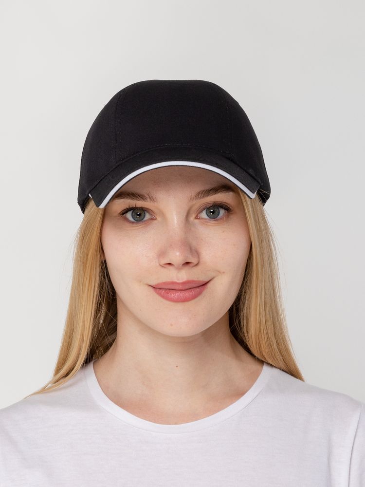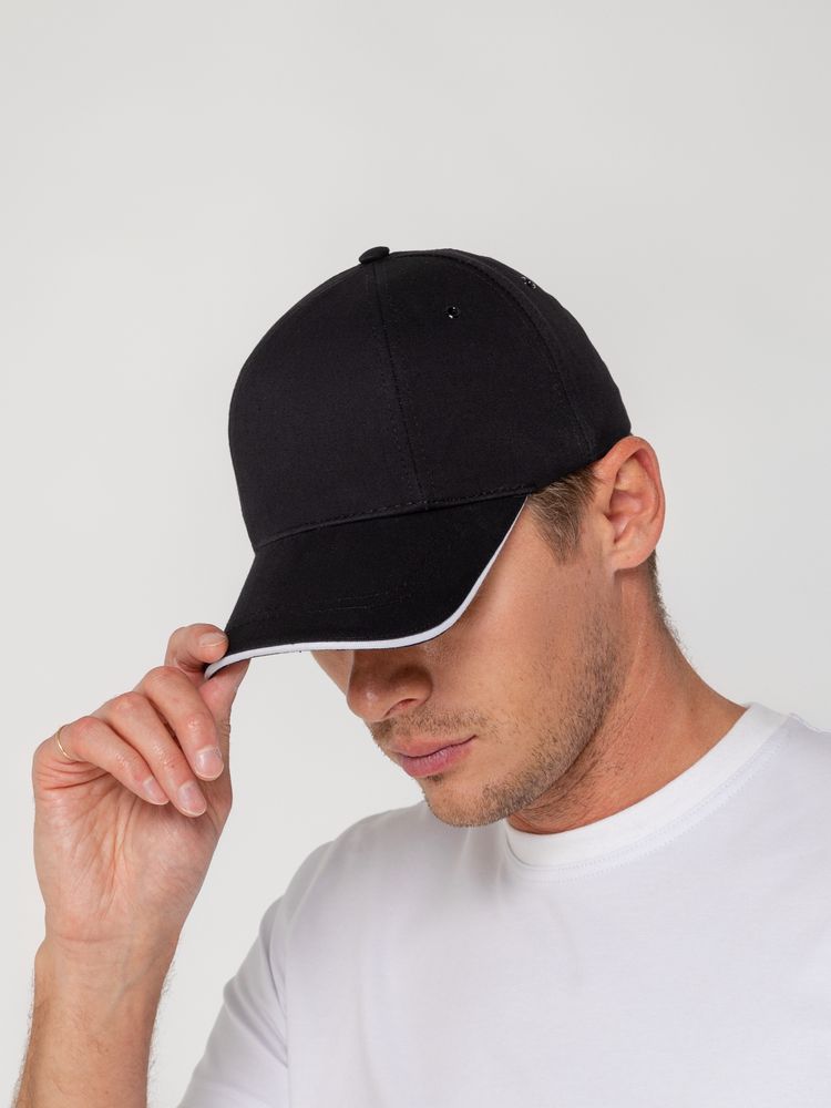 Бейсболка Canopy, черная с белым кантом можно заказать в нашей компании по самой доступной цене от 596 рублей.