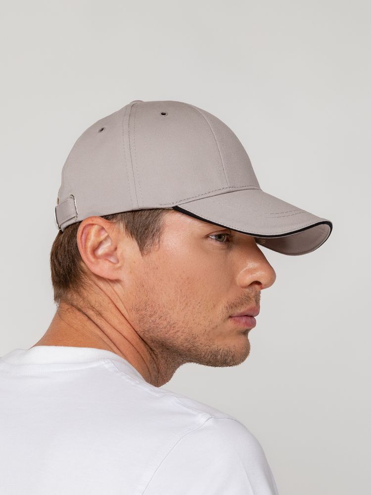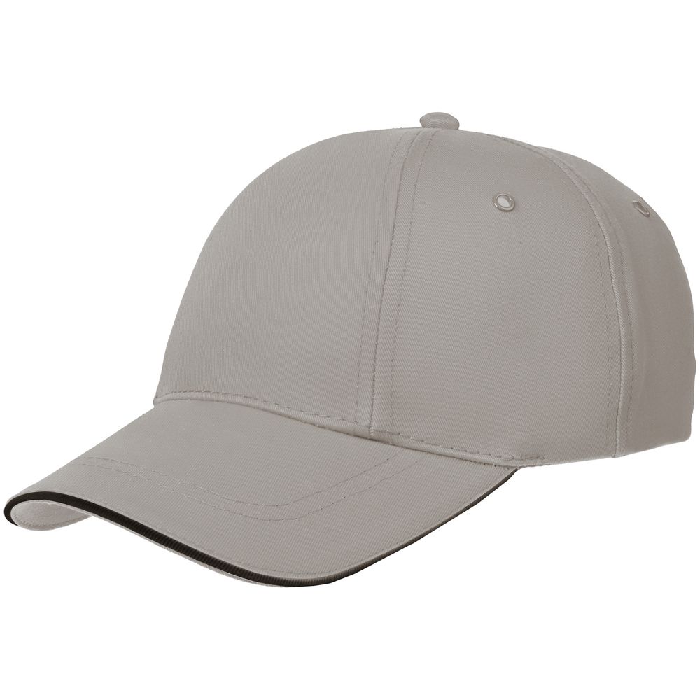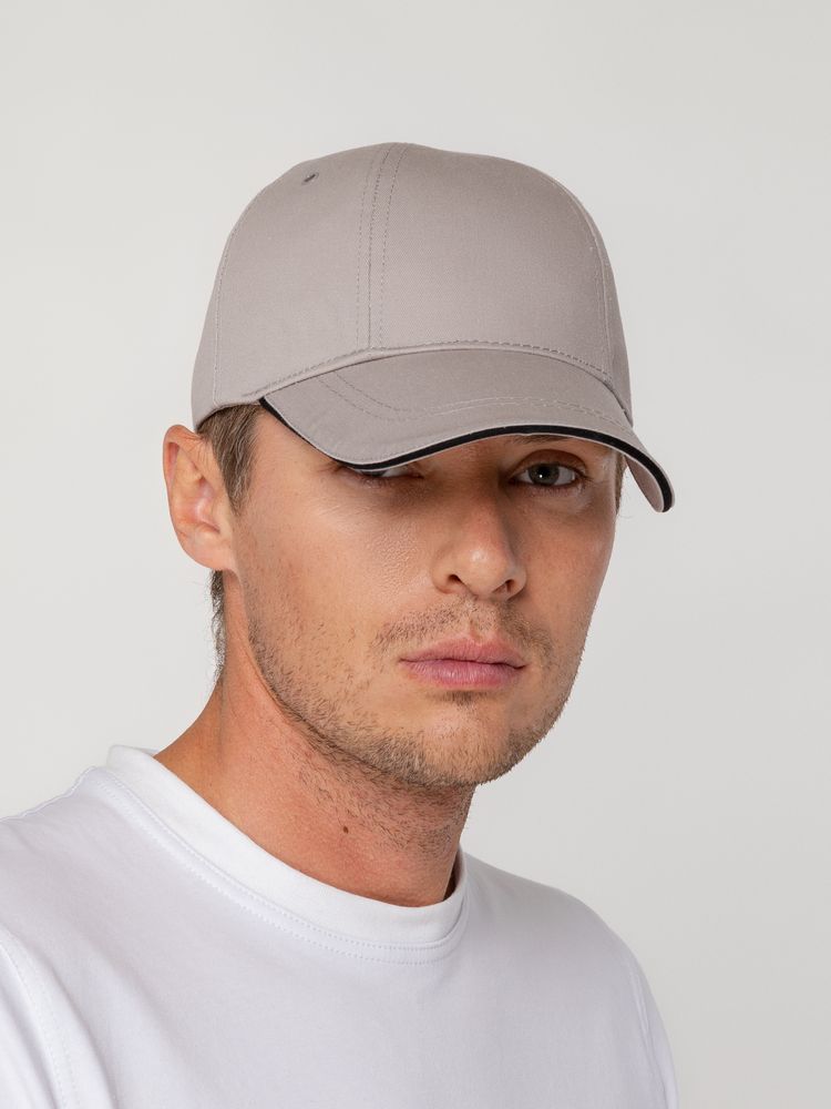 Бейсболка Canopy, серая с черным кантом можно заказать в нашей компании по самой доступной цене от 596 рублей.