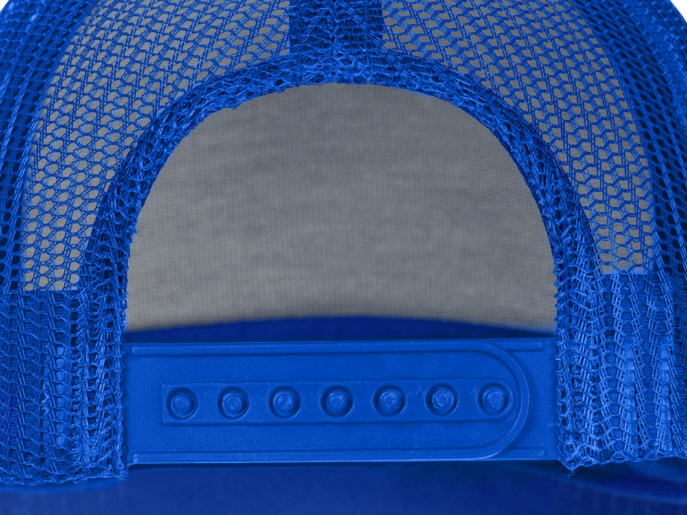 Пяти панельная бейсболка с передней частью из хлопка для комфорта головы и лба. Задняя часть из пластиковой сетки, которая отвечает за циркуляцию воздуха и обеспечивает изделию износостойкость. Для подгонки по размеру головы — пластиковая застежка.