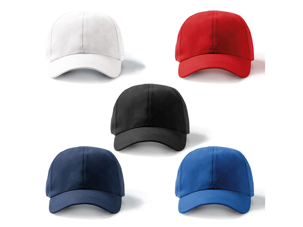 Вентилируемая спортивная кепка с 6 панелями, 100% микрофибра. Регулируемая застежка-пряжка и вентиляционные отверстия.