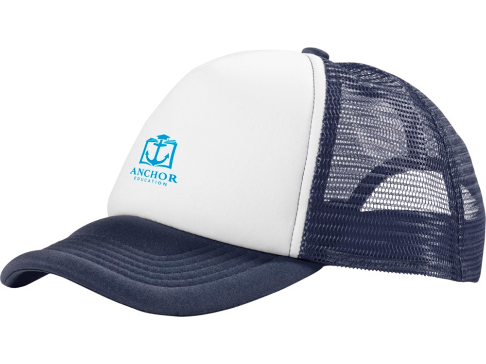 Кепка из 5 панелей Тракер. Оригинальная кепка на окружность головы 58 см с передней поролоновой частью, пластиковой сеткой сзади и пластиковой застежкой. Эта кепка полностью соответствует требованиям к соединениям AZO, формальдегиду и ПХФ. Полиэстер и поролон.