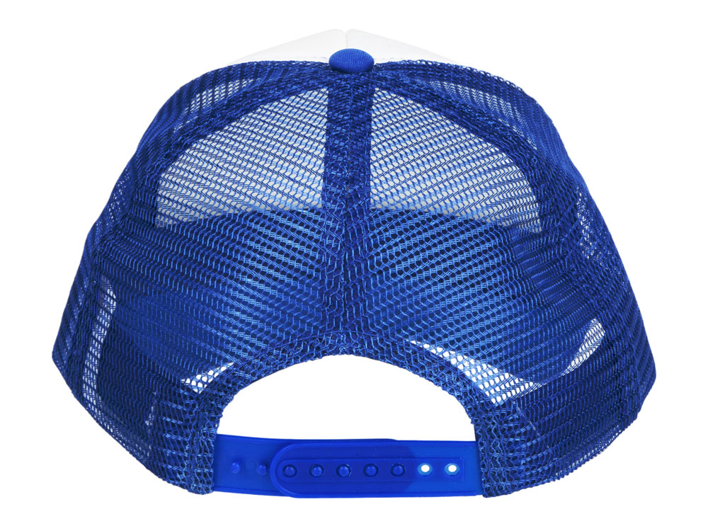 Кепка из 5 панелей Trucker. Оригинальная кепка на окружность головы 58 см с передней поролоновой частью, пластиковой сеткой сзади и пластиковой застежкой. Эта кепка полностью соответствует требованиям к соединениям AZO, формальдегиду и ПХФ. Полиэстер и поролон.