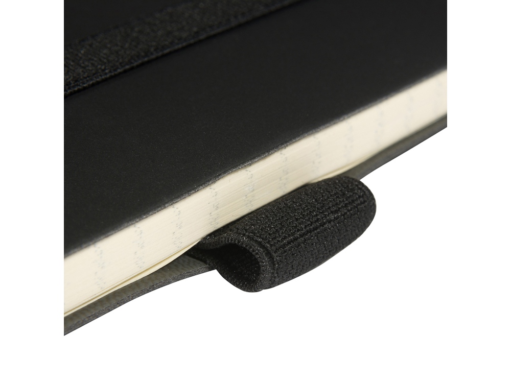Гибкая (flex) обложка с углами закругленной формы, фиксирующая резинка и ляссе в цвет обложки, петля для ручки и картонный карман для бумаги на внутренней стороне обложки наделяют блокнот практичностью.