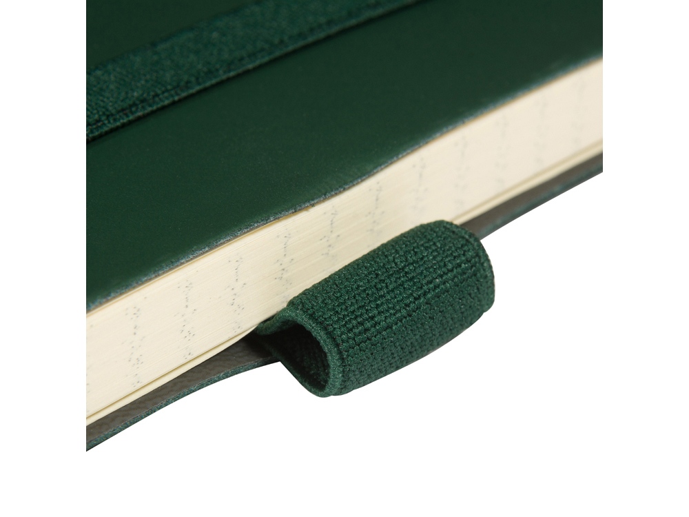 Гибкая (flex) обложка с углами закругленной формы, фиксирующая резинка и ляссе в цвет обложки, петля для ручки и картонный карман для бумаги на внутренней стороне обложки наделяют блокнот практичностью.