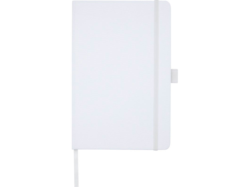 Блокнот формата А5 с обложкой из переработанного ПЭТ. Содержит 80 листов в линию плотностью 70 г/м², изготовленных из переработанной бумаги, с петлей для ручки и лентой-закладкой. Может быть дополнен шариковой ручкой Honua 107757 из переработанного ПЭТ. Переработанный PET пластик. FSC Recycled 100% P7 CU-COC-877277.