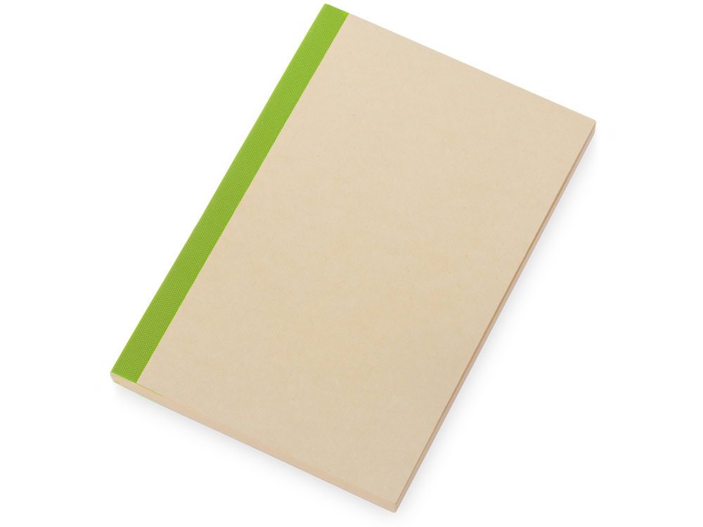 Блокнот, созданный для тех, кто заботится об экологии. Блок и обложка выполнены из переработанного сахарного тростника, а цветной корешок, который может хорошо сочетаться с логотипом, - из переработанного пластика.