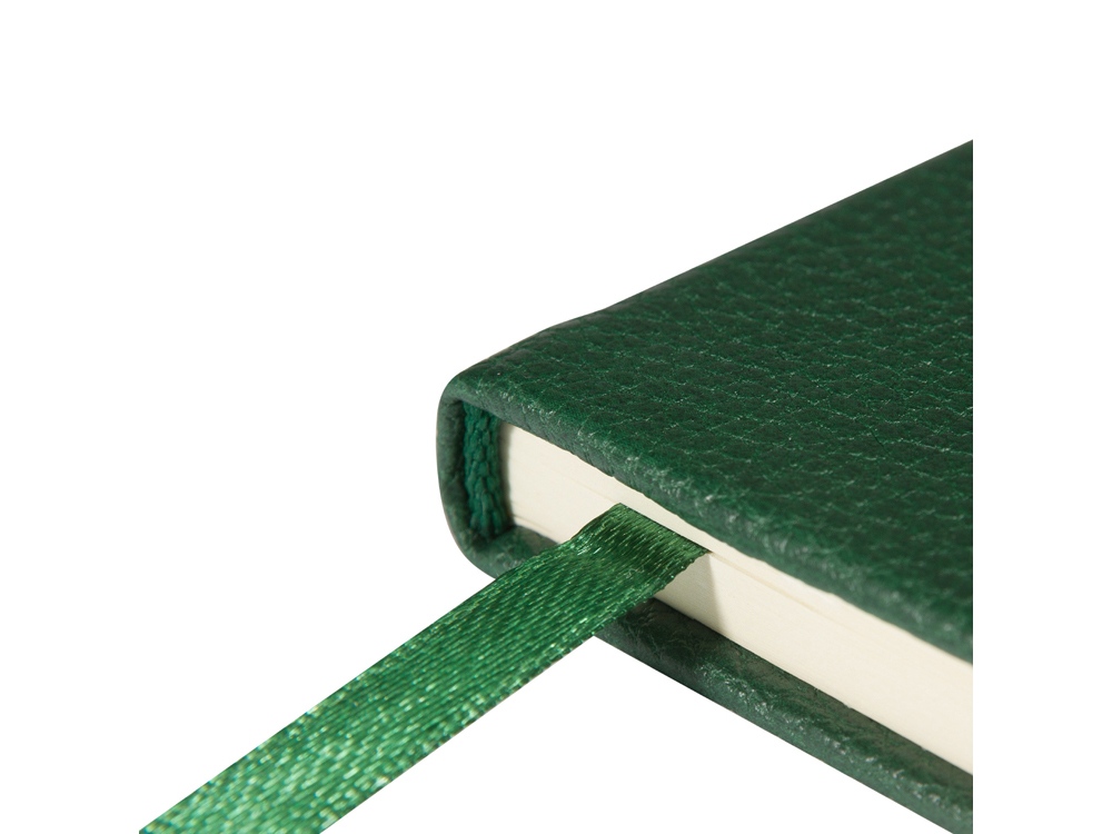 Твердая обложка с приятной фактурой, углами закругленной формы, книжный переплет и ляссе в цвет обложки наделяют блокнот практичностью.