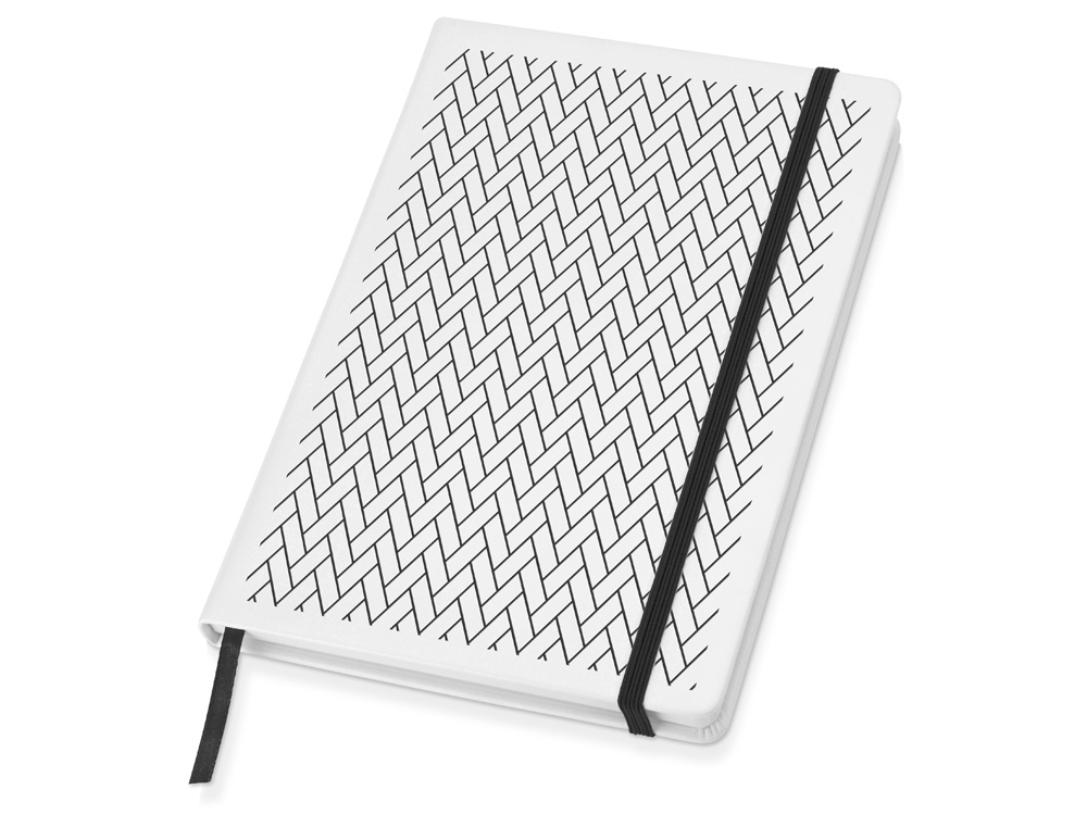 Белый линованный блокнот формата А5 с закладкой и эластичной застежкой идеально подойдет для записи секретов. Еще одна тайна спрятана в его обложке – под ее верхним слоем белого цвета скрыт контрастный фон, который становится виден при тиснении.