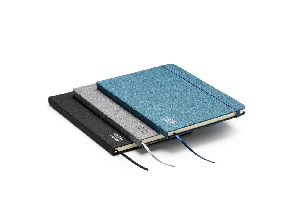 Блокнот формата А5 с жесткой обложкой из ПЭТФ. Закладка и резинка в тон. Блокнот на 80 листов.