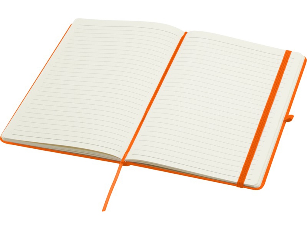 Блокнот Spectrum Plus формата А6 в твердой обложке с закругленными углами — это не только необходимая вещь в офисе, но и прекрасная возможность для продвижения вашего бренда. Картонный блокнот имеет мягкую на ощупь обложку и 80 линованных листов кремового цвета плотностью 70 г/м², идеально подходит для записи быстрых идей или длинных заметок. Блокнот оснащен петлей для ручки, эластичной застежкой, ленточкой-закладкой и карманом-гармошкой.