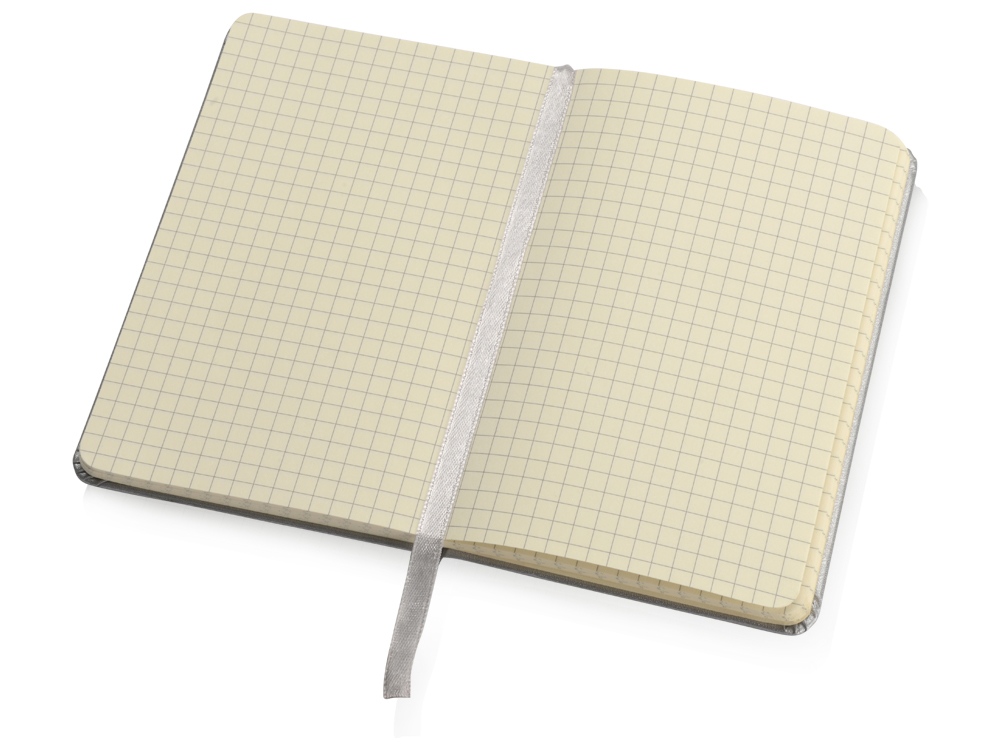 Удобный блокнот в твердой обложке с эластичной застежкой и закладкой. Формат А6. 80 листов бумаги в клетку. На плотную обложку, стилизованную под искусственную кожу, можно сделать нанесение логотипа вашей компании.