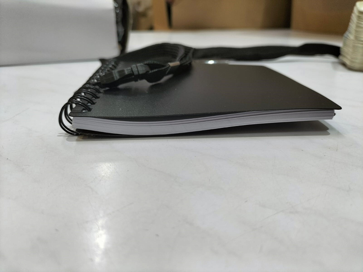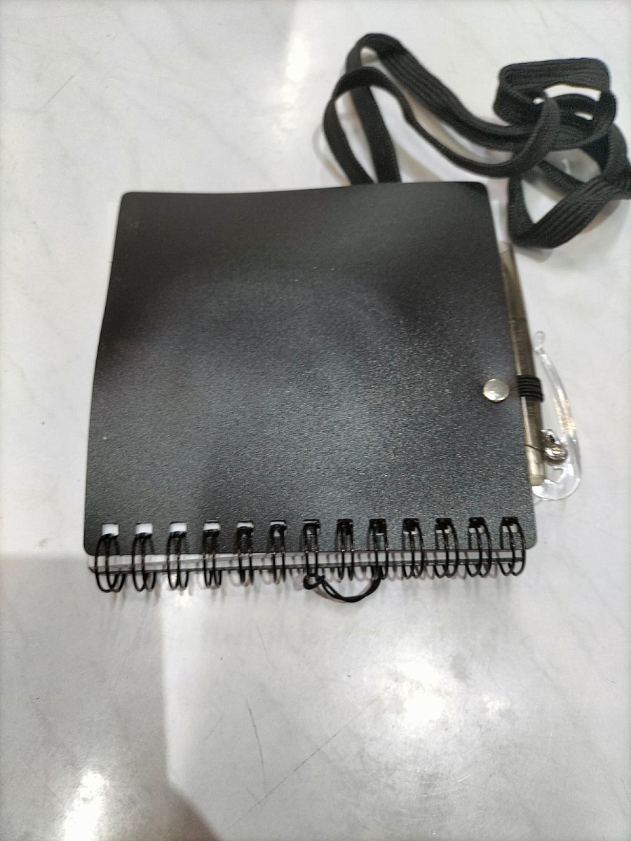 Яркий блокнот с шариковой ручкой можно носить на шее благодаря специальному ремешку (45 см). Отличный промо-сувенир, на обложку которого можно нанести логотип.