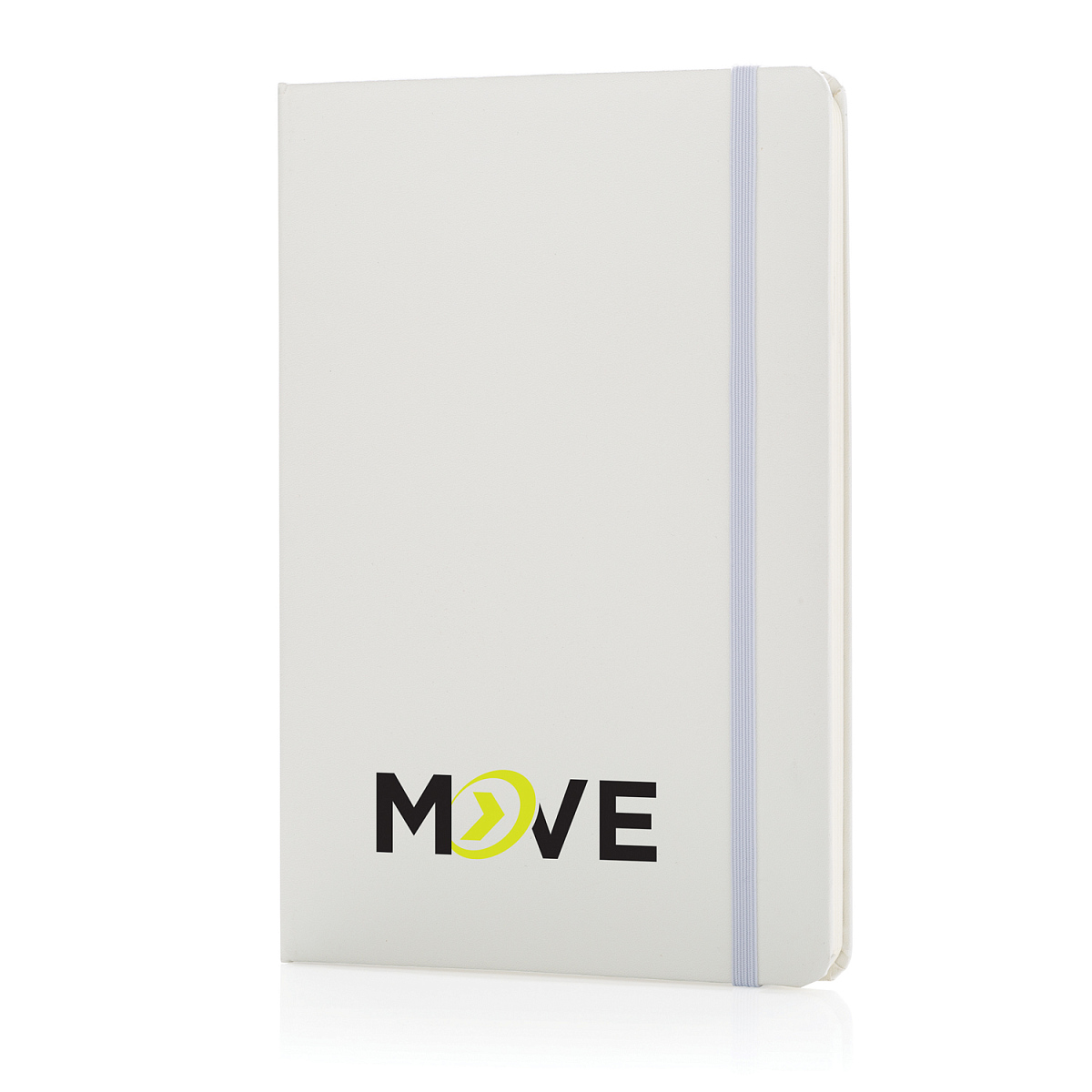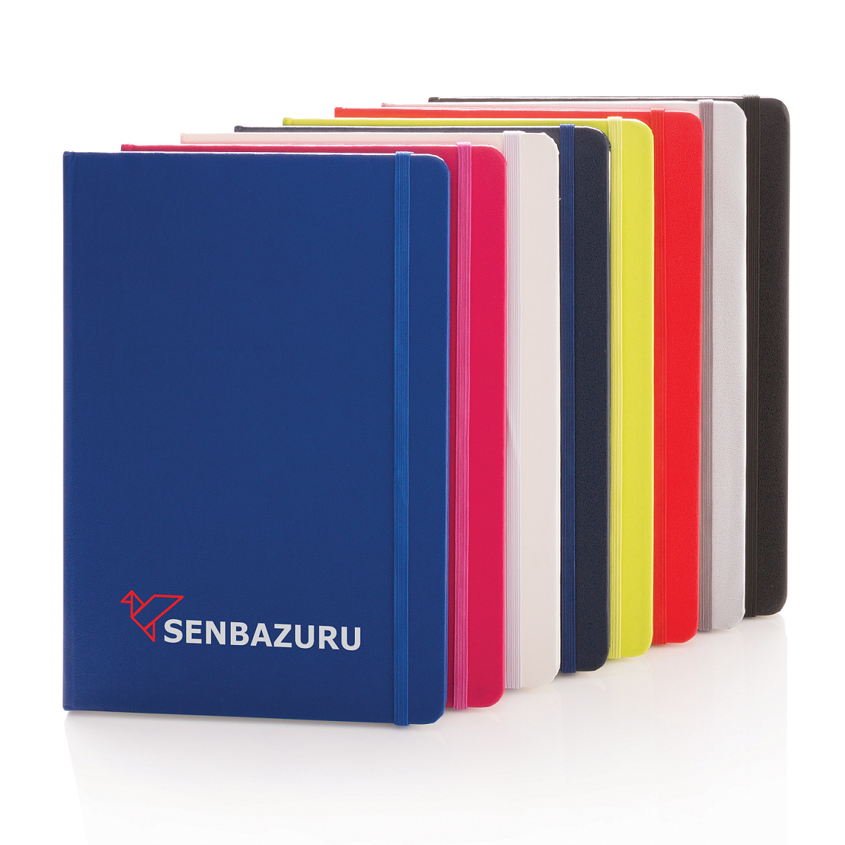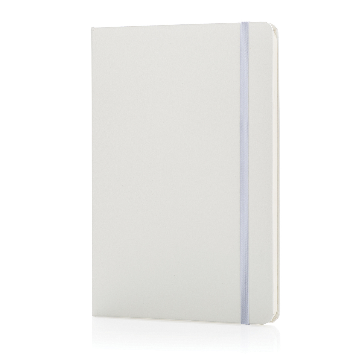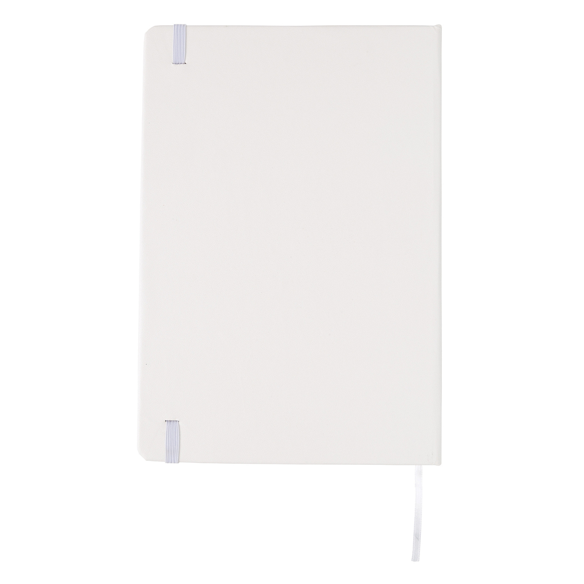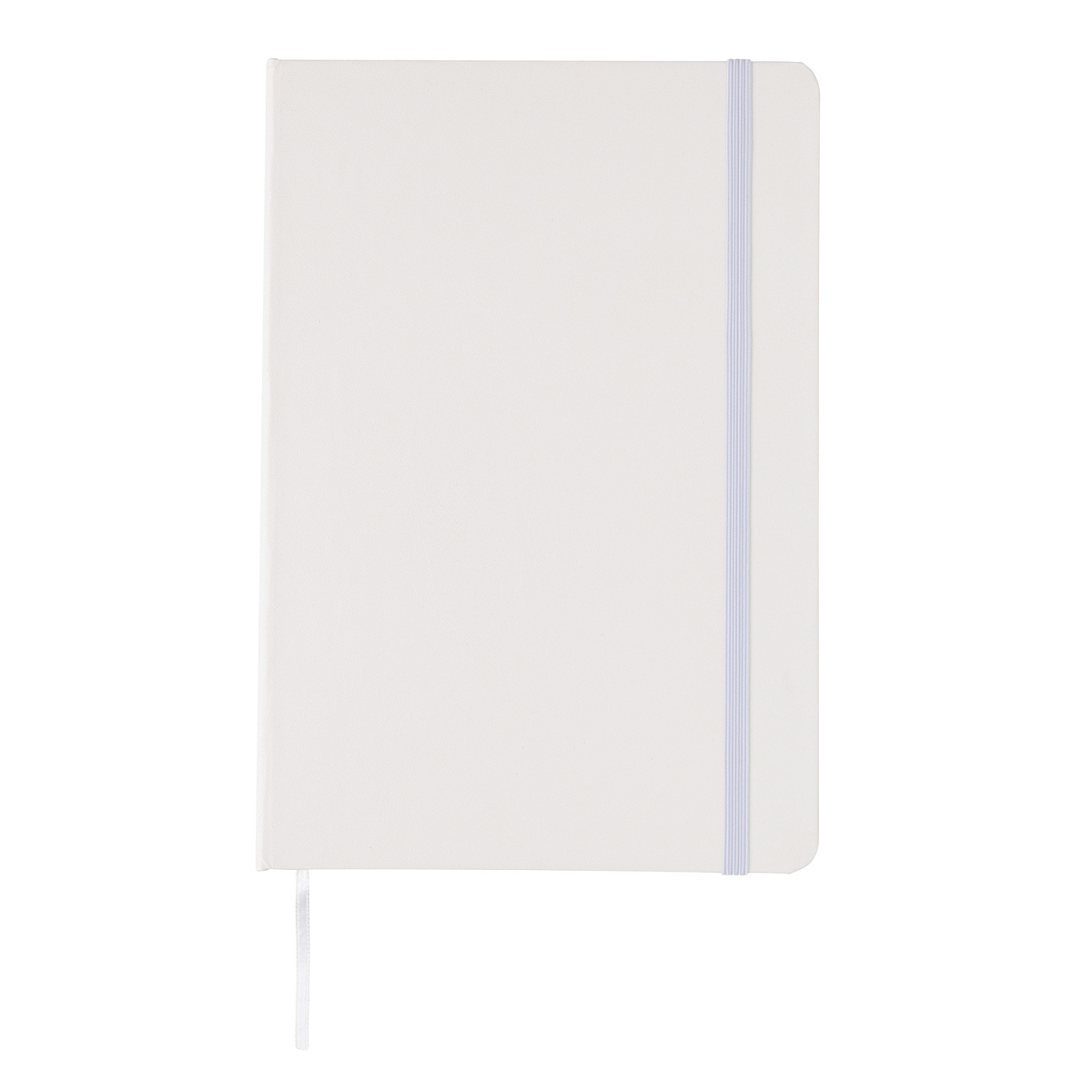 Блокнот для записей Basic в твердой обложке формата А5 на резинке с ляссе. 72 страницы, линованная бумага кремового цвета, плотностью 70 г/м2. Длина 1,3 см., ширина 14,5 см., высота 21 см., диаметр 0 см.