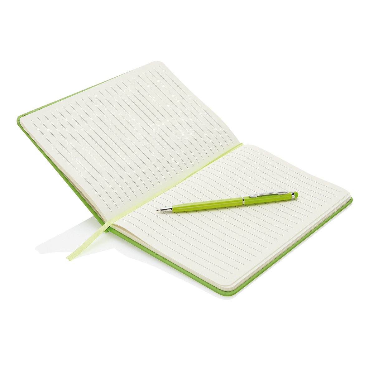 Блокнот для записей Deluxe формата A5 с кармашком для ручки и ручкой-стилус в комплекте. Упакован в подарочную коробку. Блок формата А5 на 80 страниц, плотность бумаги 80 г/м2. Длина 1,5 см., ширина 20 см., высота 14,5 см., диаметр 0 см.