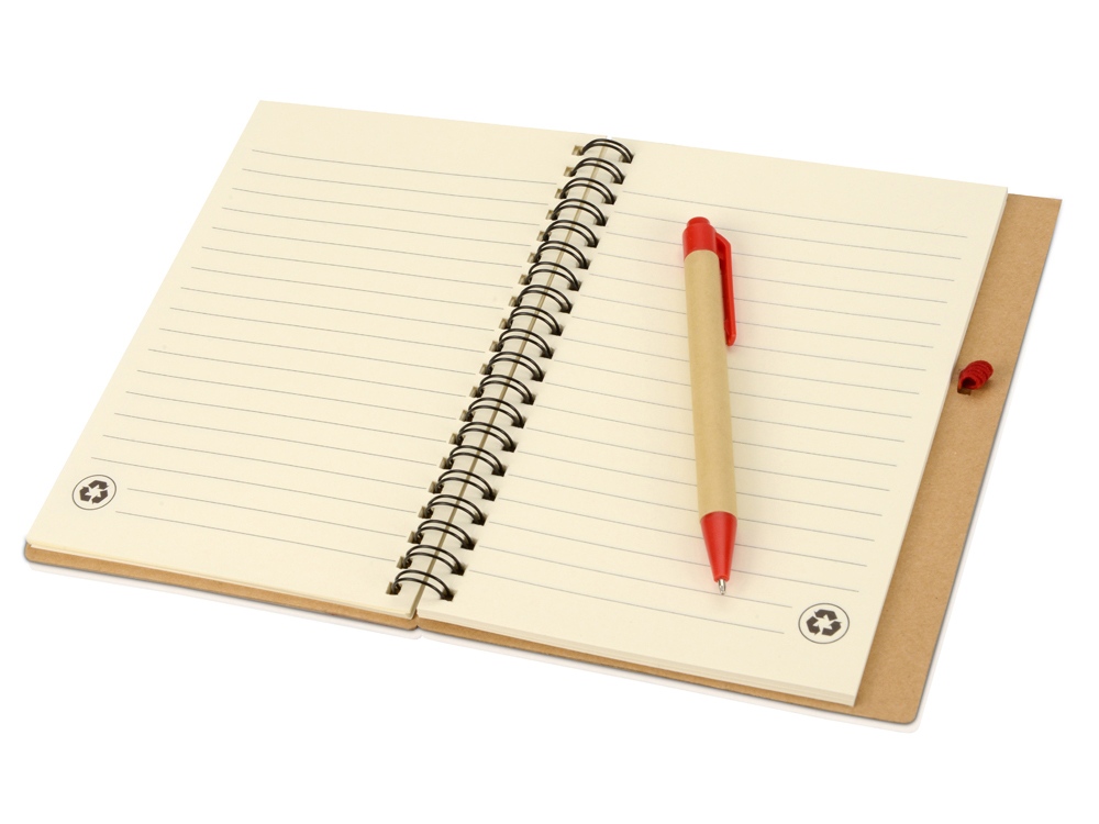 Блокнот с 60 листами переработанной бумаги 70 г/м2 и картонной ручкой в цвет блокнота.