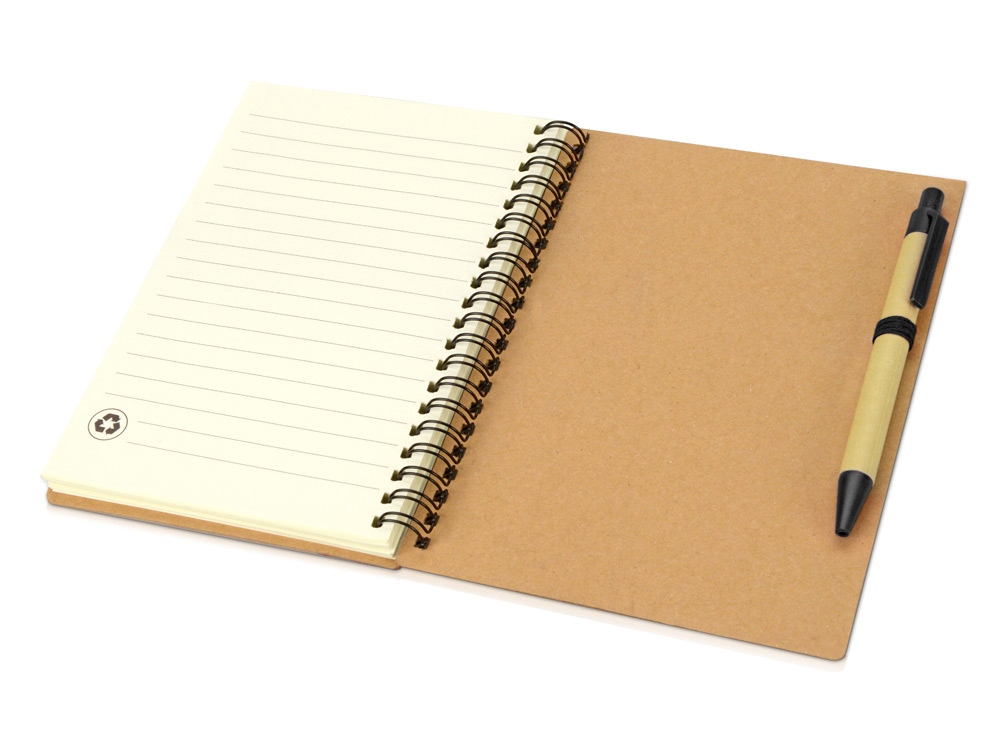 Блокнот с 60 листами переработанной бумаги 70 г/м2 и картонной ручкой в цвет блокнота.