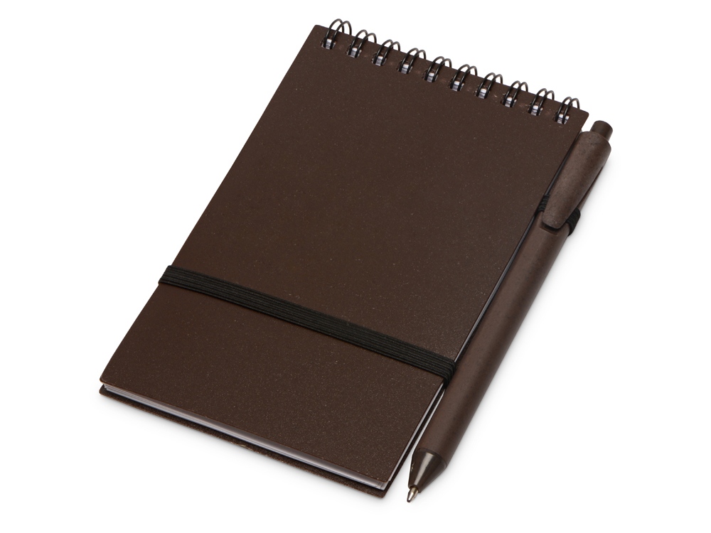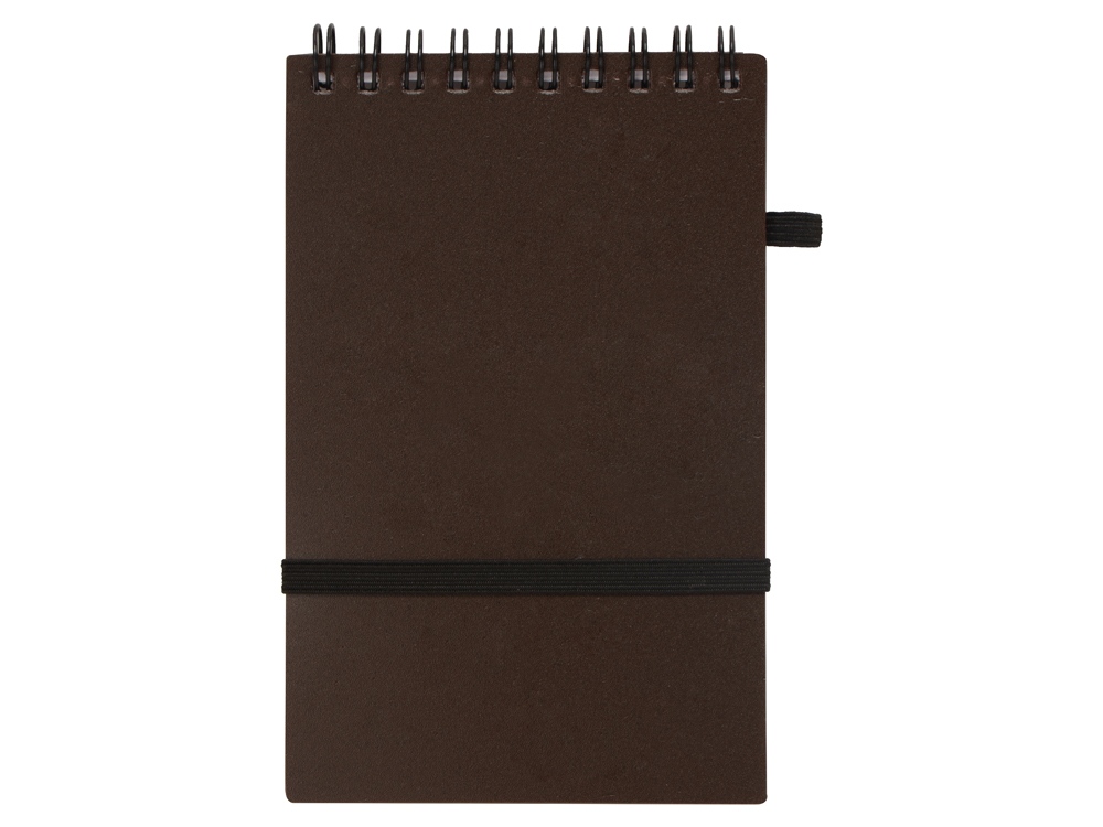 Оригинальный блокнот с обложкой из пластика и кофейного жмыха, а также блоком из переработанной бумаги. Петля для ручки и горизонтальная резинка расширяют функциональность.