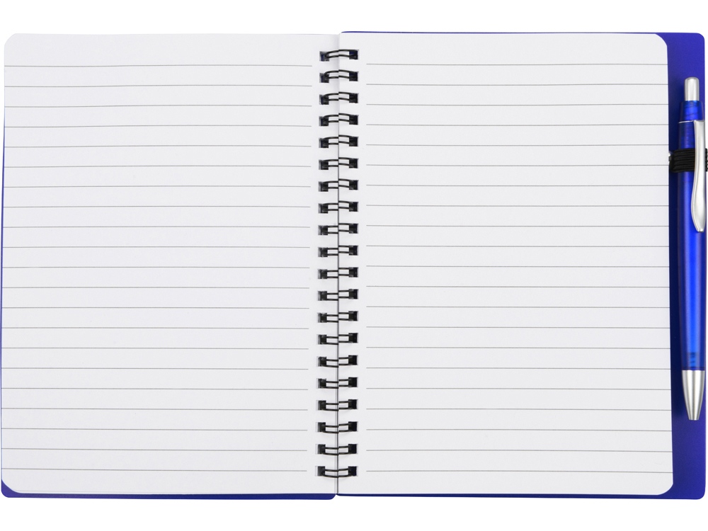 Блокнот Контакт в полипропиленовой обложке переплетен на пружине. В обложке блокнота предусмотрено окошко, в которое можно поместить визитную карточку или полиграфическую вставку. В комплекте с блокнотом идет ручка, которая вставляется в петельку сбоку.