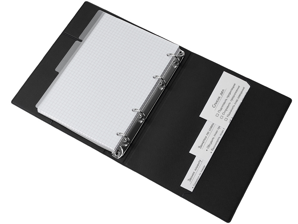 Блокнот Favor на кольцах делает его практически бесконечным в использовании, т.к. листы очень легко меняются и добавляются, а обложка из искусственной кожи делает его очень износостойким.