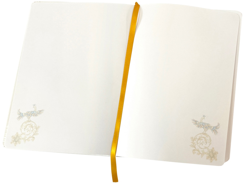 Светлая бумага с оттенком топлёного молока дополнена стилизованным изображением птицы. Блок не имеет линовки, поэтому может использоваться не только для записей, но и в качестве скетчбука для зарисовок.