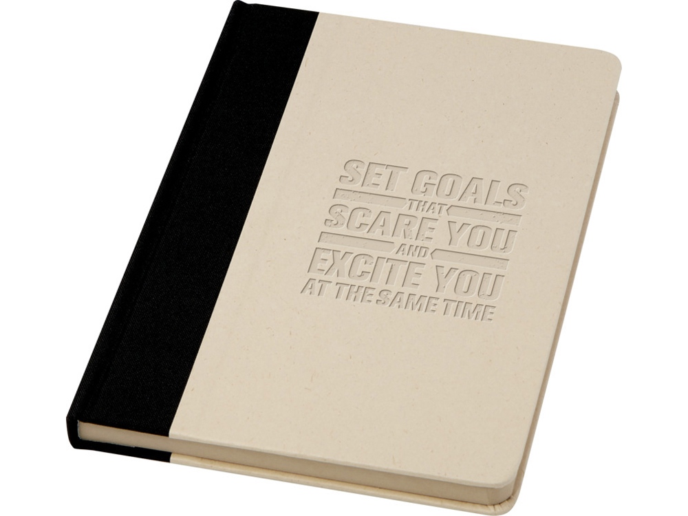 Liliana блокнот формата А5 в твердой обложке со скругленными углами и 80 линованными листами бумаги плотностью 90 г/м². Крышка изготовлена из RPET и пластика из сахарного тростника. Fruit paper.