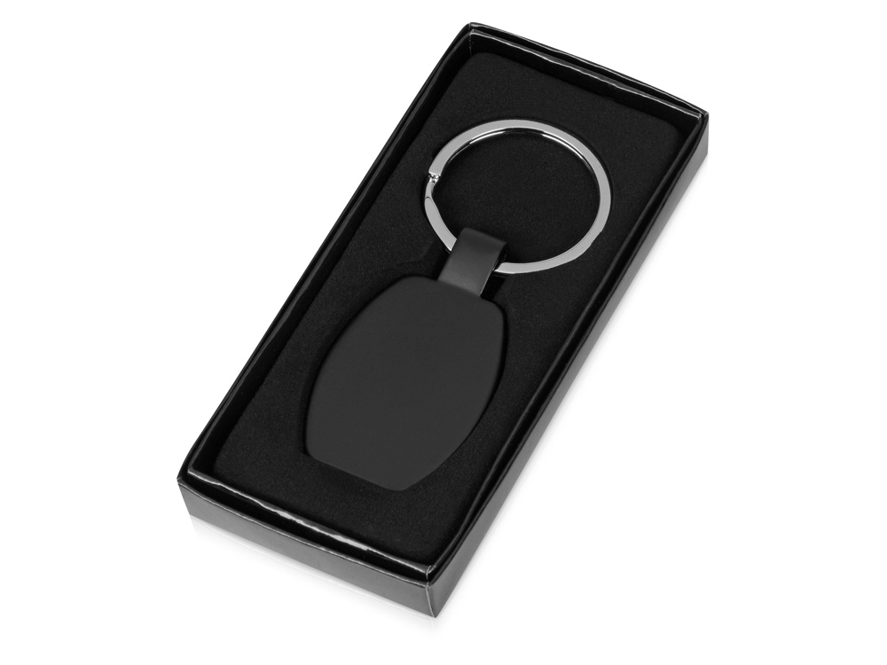 Металлический брелок с матовой бархатной поверхностью. Плавные линии и черный фон привлекут внимание к в логотипу. При гравировке открывается зеркальный слой.