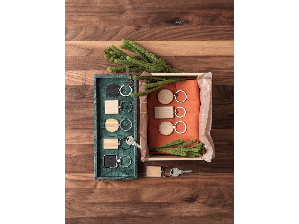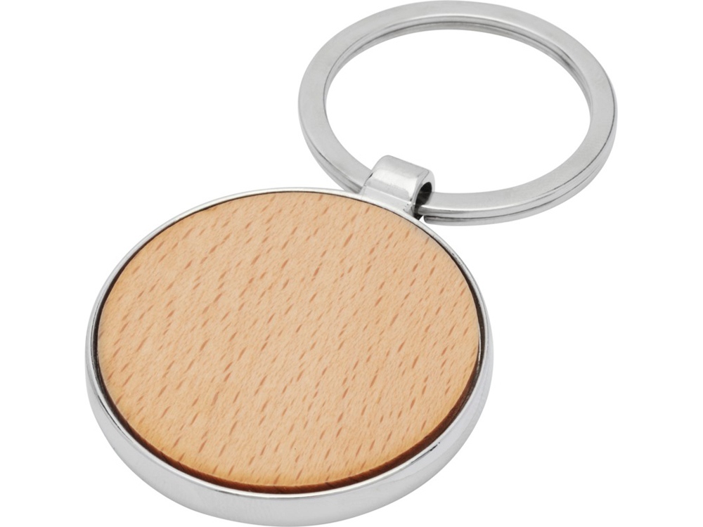Круглый брелок премиум-качества из буковой древесины с металлическим корпусом из цинкового сплава. Поставляется в коричневой упаковке из шрифтовой бумаги. Диаметр брелка составляет 4 см. Пригодный для гравировки.