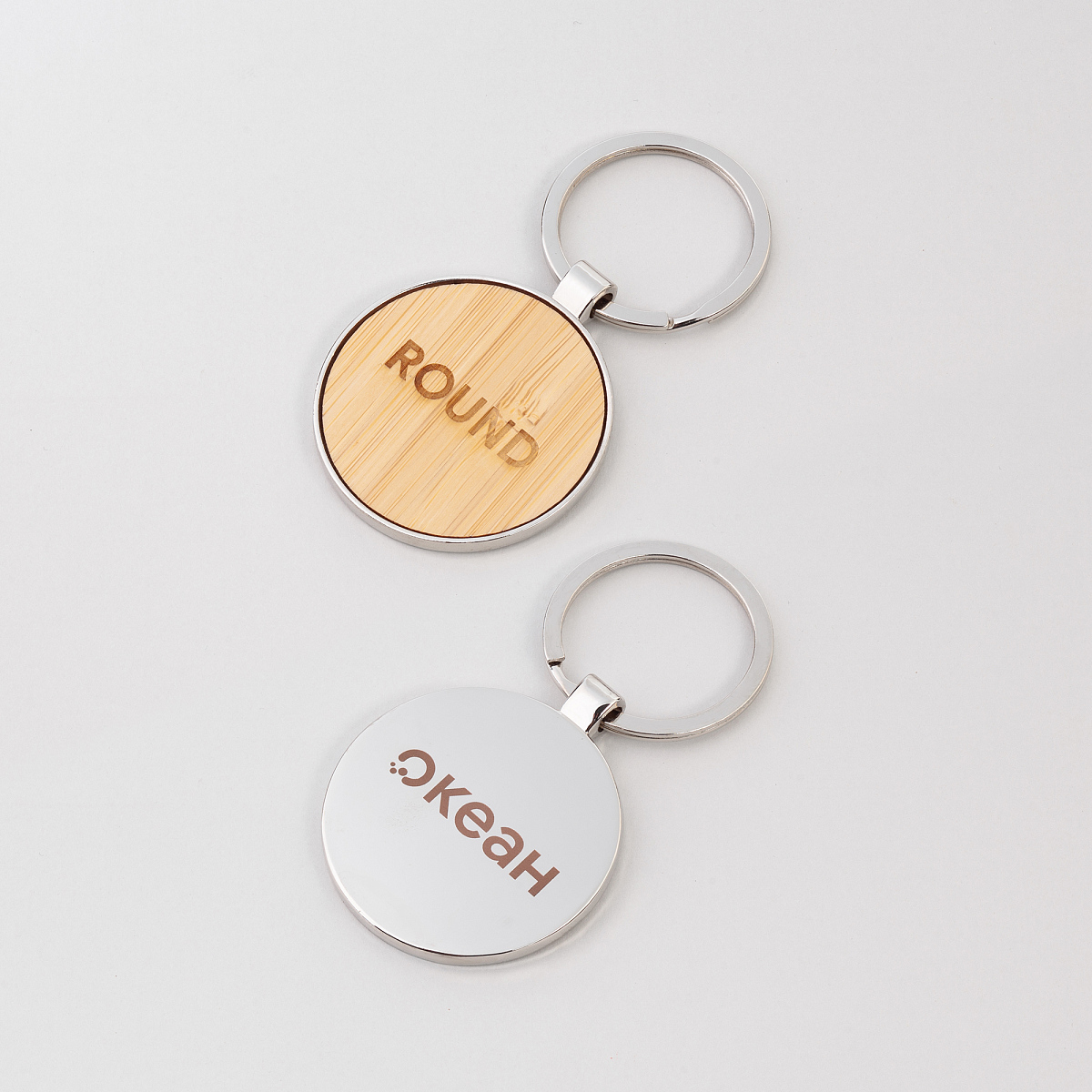 Брелок "Round" - минималистичный дизайн с ноткой эко. Прочный металлический корпус с бамбуковой вставкой, придающей брелоку индивидуальность.